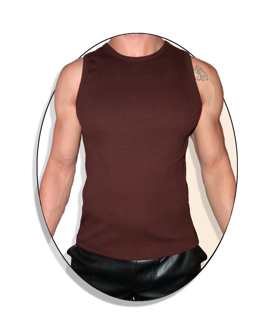 Su elasticidad estable acompaña el cuerpo sin deformarse, ofreciendo una sensación de sostén limpio y preciso. El escote a la base —profundidad de 2 cm, ribeteado con doble costura— se apoya cerca del cuello sin ajustarlo, creando una línea contenida, prolija y esencial. La sisa elevada al pecho enmarca el torso con exactitud, destacando la forma natural del pectoral sin exagerar y manteniendo la prenda ordenada en todo su contorno.